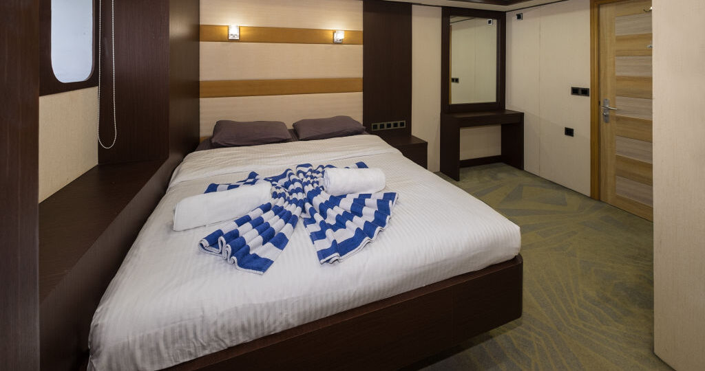 5 cabines doubles avec un lit simple et 3 cabines doubles avec lits doubles. Chaque cabine en suite et équipée de la climatisation.