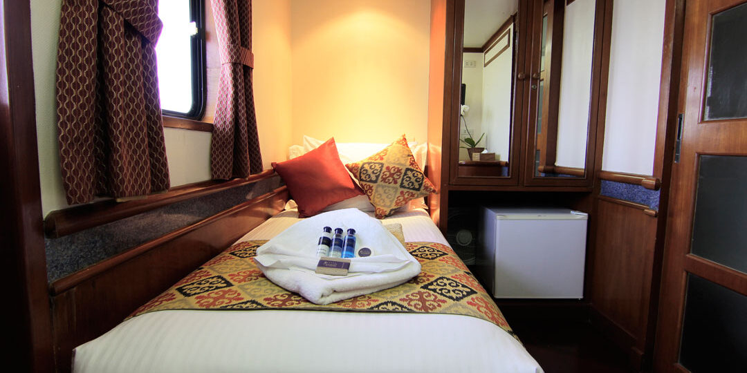 La cabine simple dispose d'un lit simple et de fenêtres panoramiques avec vue mer et d'une porte ouvrant sur la coursive. La cabine est climatisée et dispose d'une salle de bains privative, d'un minibar, d'un iPad pour vous divertir, d'un peignoir, d'articles de toilette et de serviettes moelleuses. Vous pouvez être assuré d'une nuit de sommeil fantastique sur un lit de qualité équipé de draps d'au moins 300 fils.