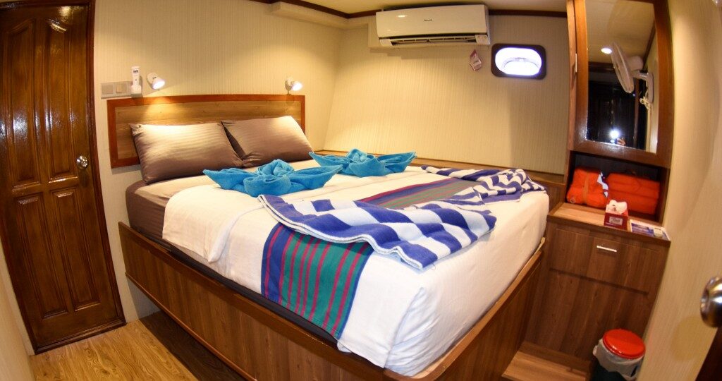 트윈 캐빈 7개(데크 선택)와 더블 캐빈 3개, 모두 에어컨과 선풍기를 갖춘 전용 욕실을 갖추고 있습니다.