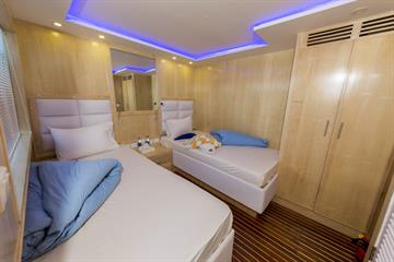 下层甲板设有 7 间双人舱。所有舱室均设有卫浴设施和空调。